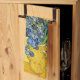 Van Gogh Irises kitchen towel. Oil painting on canvas from 1890. Van Gogh created multiple iris paintings throughout his career, Still Life with Irises features a bouquet of freshly cut irises in a yellow vase with a yellow background. The Irises are in full bloom and lean over the edge of the vase towards the table. In typical Van Gogh fashion, the irises seem vibrant, thick, heavy, and full of life. A beautiful gift for fans of Van Gogh, post-impressionism, iris paintings, and French art.