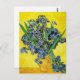 Van Gogh Irises postcard. Oil painting on canvas from 1890. Van Gogh created multiple iris paintings throughout his career, Still Life with Irises features a bouquet of freshly cut irises in a yellow vase with a yellow background. The Irises are in full bloom and lean over the edge of the vase towards the table. In typical Van Gogh fashion, the irises seem vibrant, thick, heavy, and full of life. A beautiful gift for fans of Van Gogh, post-impressionism, iris paintings, and French art.