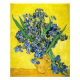 Van Gogh Irises print. Oil painting on canvas from 1890. Van Gogh created multiple iris paintings throughout his career, Still Life with Irises features a bouquet of freshly cut irises in a yellow vase with a yellow background. The Irises are in full bloom and lean over the edge of the vase towards the table. In typical Van Gogh fashion, the irises seem vibrant, thick, heavy, and full of life. A beautiful gift for fans of Van Gogh, post-impressionism, iris paintings, and French art.
