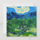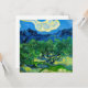 Card featuring Vincent van Gogh’s oil painting Olive Trees in a Mountainous Landscape (1889). Green olive trees decorate a mountainside underneath a starry night sky. A marvellous gift for lovers of Post-Impressionism and Dutch art collectors!