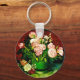 Keychain featuring Vincent van Gogh’s oil painting Bowl with Peonies and Roses (1886). Beautiful pink and white peonies and roses sit in a green vase against a red background. A wonderful gift for fans of Post-Impressionism and Dutch art.