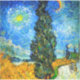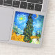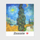 Sticker featuring Vincent van Gogh’s oil painting Road with Cypress and Star (1890), also known as Country Road in Provence by Night. People walk along a road passing a beautiful cypress tree underneath a blue night sky with yellow moon and stars. A fantastic gift for fans of Post-Impressionism and Dutch art.