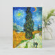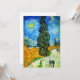 Card featuring Vincent van Gogh’s oil painting Road with Cypress and Star (1890), also known as Country Road in Provence by Night. People walk along a road passing a beautiful cypress tree underneath a blue night sky with yellow moon and stars. A fantastic gift for fans of Post-Impressionism and Dutch art.