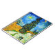 Notebook featuring Vincent van Gogh’s oil painting Road with Cypress and Star (1890), also known as Country Road in Provence by Night. People walk along a road passing a beautiful cypress tree underneath a blue night sky with yellow moon and stars. A fantastic gift for fans of Post-Impressionism and Dutch art.