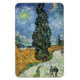 Vincent Van Gogh Road with Cypresses magnet. Oil painting on canvas from 1890. Road with Cypresses is an enchanting landscape completed by Van Gogh at Saint-remy-blanzy. The vibrant use of slithering blues and greens imbues the painting with an almost underwater quality. A great gift for fans of country landscapes, post-impressionism, Van Gogh, and French Art.