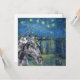 Beautiful and artistic compilation features Van Gogh's Starry Night Over the Rhone as background with portrait of beautiful black horse with watercolor floral crown overlay.