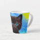 Latte Mug featuring a black cat in Van Gogh’s painting Starry Night! This blue eyed kitten gazes adoringly from a background of blue swirls and a bright yellow moon. A fantastic gift for cat lovers and Dutch art collectors!