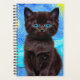 Planner featuring a black cat in Van Gogh’s painting Starry Night! This blue eyed kitten gazes adoringly from a background of blue swirls and a bright yellow moon. A fantastic gift for cat lovers and Dutch art collectors!