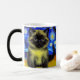Magic Mug featuring a Siamese cat in Van Gogh’s painting Starry Night! This fluffy beauty poses in front of a blue night sky with shining moon and stars. A cosy gift for cat lovers and Dutch art collectors!