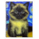 Notebook featuring a Siamese cat in Van Gogh’s painting Starry Night! This fluffy beauty poses in front of a blue night sky with shining moon and stars. A cosy gift for cat lovers and Dutch art collectors!