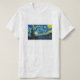 Van Gogh Starry Night t-shirt. Van Gogh’s most famous painting, Starry Night depicts the view from the artist’s bedroom window at the asylum in Saint Remy de Provence. A beautiful night sky punctuated by yellow stars pulsing above the village church below, Starry Night is a great gift for fans of impressionism, Vincent van Gogh, cloudscapes, and French painting.