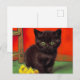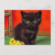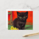 Postcard featuring a black cat in Van Gogh style! This beautiful kitty adorably sits next to sunflowers upon a green floor against a red wall. A cute gift for cat lovers and Dutch art collectors!