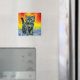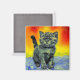 Magnet featuring a Van Gogh style cat. This black kitty relaxes on the blue waters of a beach. A sunset of red and yellow fills the sky. A wonderful gift for cat lovers and Dutch art collectors!