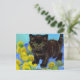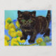 Postcard featuring a Van Gogh style cat with sunflowers! A pretty black kitten cutely poses with yellow flowers. A fabulous gift for cat lovers and Dutch art collectors!