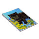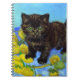 Notebook featuring a Van Gogh style cat with sunflowers! A pretty black kitten cutely poses with yellow flowers. A fabulous gift for cat lovers and Dutch art collectors!