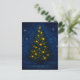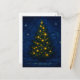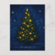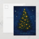 A Christmas tree at night in the swirling, expressive painted style of Van Gogh’s Starry Night, deep navy blue sky with thick swirling brush strokes, glowing golden yellow Christmas lights and soft white stars. Image looks like a print of a painting.