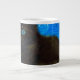 Coffee Mug featuring a Van Gogh cat in the style of Starry Night! A fluffy black kitten perches on a table against a blue night sky and yellow moon. A purr-fect gift for cat lovers and Dutch art collectors!