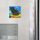 Magnet featuring a Van Gogh cat in the style of Starry Night! A fluffy black kitten perches on a table against a blue night sky and yellow moon. A purr-fect gift for cat lovers and Dutch art collectors!