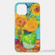 iPhone 12 Case featuring Vincent van Gogh’s still life painting depicting a bouquet of sunflowers in a green vase. Part of his initial version in the Arles Sunflowers series. A great gift for fans of flower paintings, Post-Impressionism, and Dutch art.
