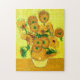 Puzzle featuring Vincent van Gogh’s oil painting Vase with Fifteen Sunflowers (1888). The art depicts a still life of fifteen beautiful sunflowers in a vase. A great gift for fans of Post-Impressionism and Dutch art.