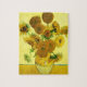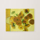 Van Gogh Sunflowers puzzle. Oil painting on canvas from 1888. Vase with Fifteen Sunflowers is one of Vincent Van Gogh’s most beloved still life works. The brilliant use of yellows quietly evokes the end of summer. A great gift for fans of sunflowers, Van Gogh, impressionism, and still life art.
