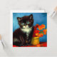 Card featuring a beautiful Van Gogh tuxedo cat! This little kitty poses next to a basket of orange flowers upon a red table. A great gift for cat lovers and Dutch art collectors!