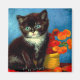 Magnet featuring a beautiful Van Gogh tuxedo cat! This little kitty poses next to a basket of orange flowers upon a red table. A great gift for cat lovers and Dutch art collectors!