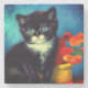 Stone Coaster featuring a beautiful Van Gogh tuxedo cat! This little kitty poses next to a basket of orange flowers upon a red table. A great gift for cat lovers and Dutch art collectors!