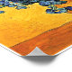 Vincent Van Gogh's Still Life Vase with Irises Against a Yellow Background. This oil on canvas from 1890, painted by Van Gogh during his stay at the asylum in Saint-Rémy France, shows a vase full of blue and purple iris flowers against a bright yellow background.