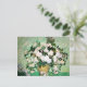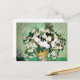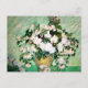 Van Gogh Vase with Pink Roses postcard. Oil painting on canvas from the 1890. Van Gogh created many gorgeous paintings of flowers throughout his career. Vase with Pink Roses is perhaps one of his most enigmatic and critically celebrated. Despite the title, the pink roses depicted have faded to an uncanny white, and the background and table instead emphasize a haunting green. Just a touch of pink remains of the flowers that hang heavy over the side of the vase and fall about the table. A beautiful flower painting for lovers of Van Gogh, post-impressionism, roses, and French art.