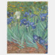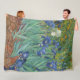 This beautiful fleece blanket is inspired by Irises painted by Vincent van Gogh in 1889. The image boasts blue irises with green stems and leaves with pointy tips planted in the red-brown earth.