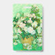 Badge featuring Vincent van Gogh’s oil painting Vase with Pink Roses (1890). A gorgeous bouquet of roses are in a vase against a green background. A perfect gift for fans of Post-Impressionism and Dutch art.
