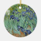 Beautiful painting of Irises by Van Gough, on this found ornament. Great on your Christmas tree or as other decorative uses around the house, like a fan pull or hanging on the wall. Makes a great gift for anyone who loves fine art.