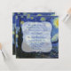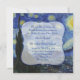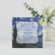 Colourful square wedding invitation, with a picture of Vincent Van Gough's classic painting Starry Night as the background. A blue framed decorative text area, has custom blue script text. Personalise the text to suit your needs. Matching wedding products are available.