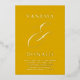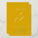 Modern wedding invitation featuring a simple and minimal layout with your names and an elegant ampersand in a large format above your event details. All text on the front is in real foil over a mustard yellow background and may be changed in the design editing tool.