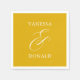 Modern wedding napkins featuring a simple and minimal layout with your names and an elegant ampersand in a large format. The colour theme is mustard yellow and may be changed in the design editing tool.