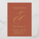 Modern wedding invitation featuring a simple and minimal layout with your names and an elegant ampersand in a large format above your event details. All text on the front is in real foil over a terracotta background and may be changed in the design editing tool.