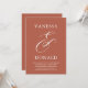 Modern wedding invitation featuring a simple and minimal layout with your names and an elegant ampersand in a large format above your event details. The colour theme is terracotta and may be changed in the design editing tool.