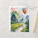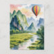 Vang Vieng Laos Hot air Balloon watercolor Postcard
