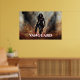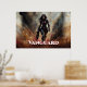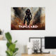 Powerful sci-fi warrior striding through fire and smoke, clad in dark futuristic armor. A dynamic, cinematic scene full of intensity, strength and action. Perfect for fans of epic battles, dystopian worlds and strong female heroes.