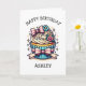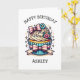 Cute personalised birthday card for her. Graphics of a pink and blue vanilla cupcake with flowers and bows. Cute for a friend or family member.