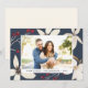 Send holiday greetings to friends and family in chic style with our elegant photo cards. Your photo is bordered in white, on a smoky navy blue background adorned with creamy vanilla flowers and red berries. Personalise with your custom greeting (shown with "warm wishes") and your family name or individual names.