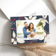 Elegant holiday keepsake photo block features your favourite photo against a navy blue background adorned with pale ivory winter flowers and red berries. Customise the inside with a custom message and signoff.