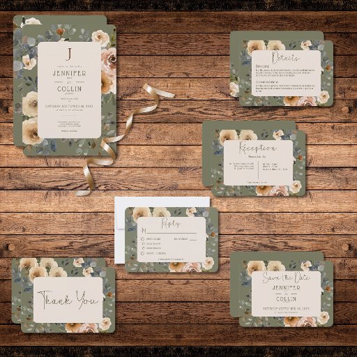 Vanilla White Boho Roses Sage Wedding SuiteDesigned by Kathe Santillo