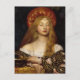 Vintage 1907 mediaeval inspired maiden with a haughty expression and her bejeweled hands folded in her lap. Painting by English portrait artist Frank Cowper.