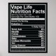 Enjoy this vape parody poster based on the nutrition facts found on boxes of food. Vape on!