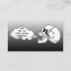 Vape and Smoke Shop business card with graphics of a skull smoking a vape and a hand holding a vap machine.