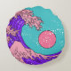 Vaporwave Great Wave: Stylised Ocean Art Round Cushion