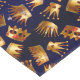 Various gold crowns with gems on blue & black embellished background, seamless repeat pattern