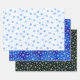 Various Shapes Snowflakes Blue White Black Elegant Wrapping Paper Sheets. (For Sheet #2, the background blue colour is slightly uneven - that is part of the design, not print error. )